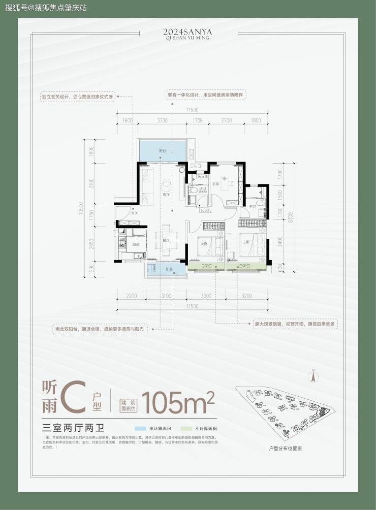 ? 听雨 C户型-建面约105㎡ 三室两厅两卫