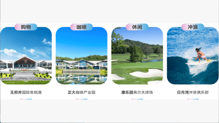 🌊亲海:邻近石梅湾,集碧海、青山、白沙、奇石、岛屿、椰林于一体,景色怡人。