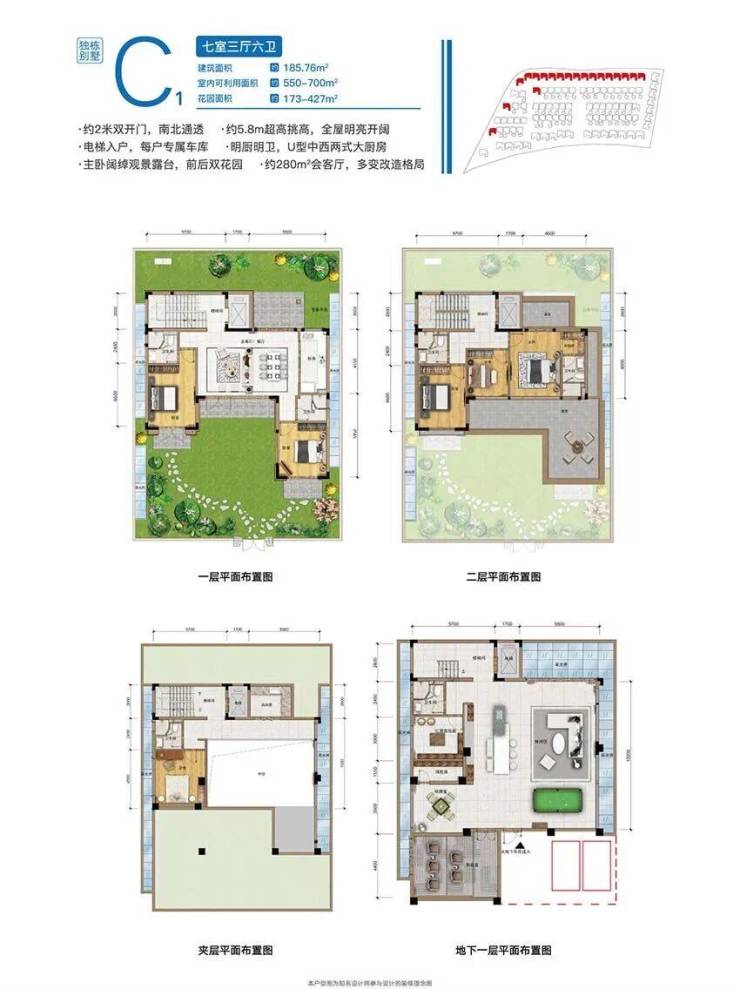 平墅:约109—169㎡ 一梯一户,康养平墅