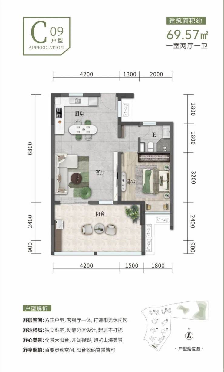 建筑面积约69㎡一房一厅