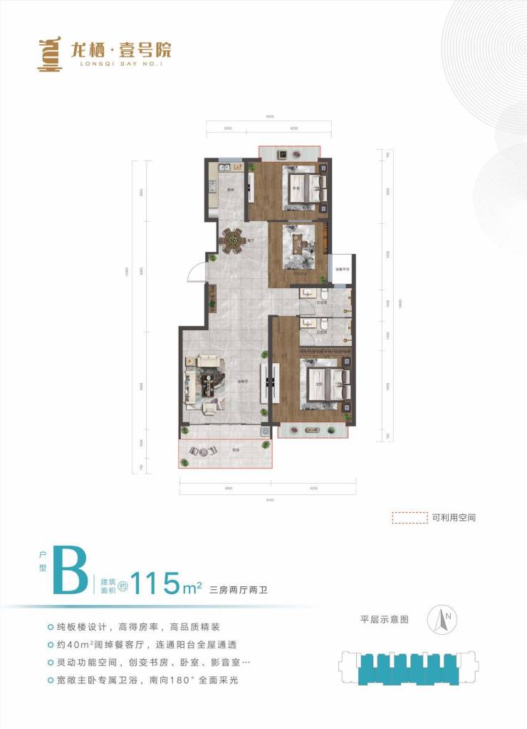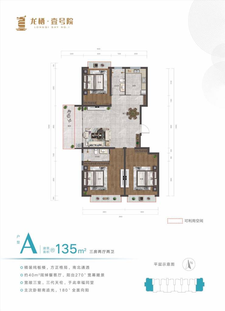 •在售户型:115㎡、135㎡,三房两厅两卫