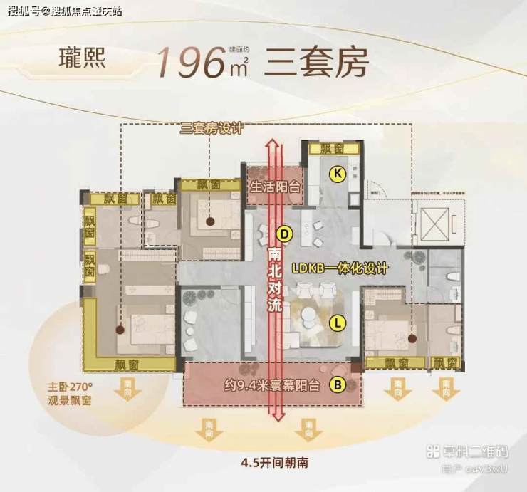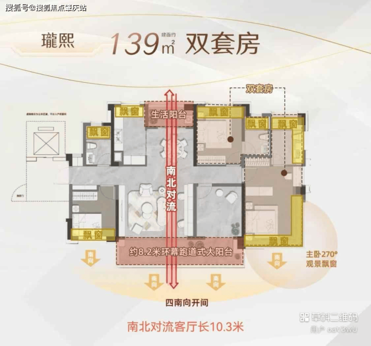 设计上,户户单边位,阳台率30%,有意思的是,168㎡(含)以上户型都有3个套房。