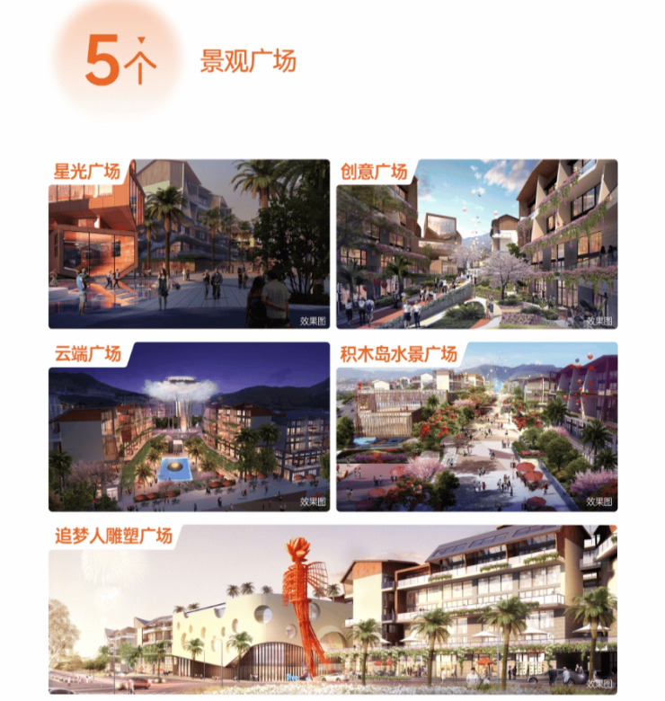 梦想小镇规划了餐饮、嘉年华、趣店和特色民宿四大板块、七大山居主题风情街区,将全国最特色的美食、特色手工、异国特色老店、主题酒吧、艺术酒店等融集于小镇,打造吃喝玩乐购一站式度假生活。
