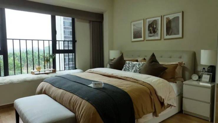 项目建筑面积约12.6万㎡ ,10栋14层住宅,最大楼间距48m,仅18%建筑密度,户内公摊低至17%,打造精美低密人居,纵享惬意舒适生活。南北通透双阳台,呈现270°山水、园林美景,让每一幅空间画面皆诠释质感。