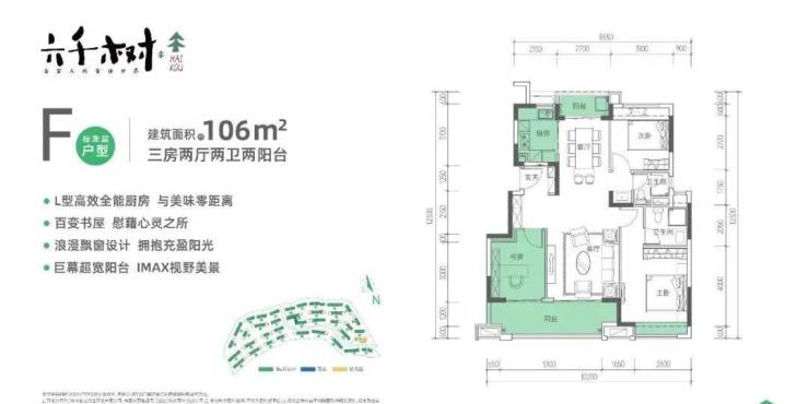 F户型 (宽景阳台设计——约106㎡阳光三房)