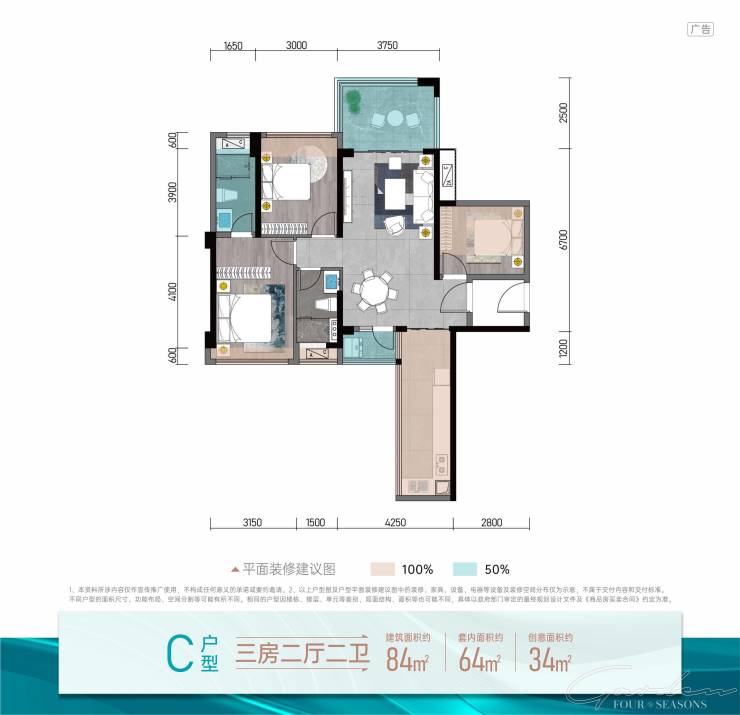 ☆项目毗邻580亩银帆公园,同步配建约6500m²市政公园,外拥两大公园,成就全城罕有的生态宜居高度。