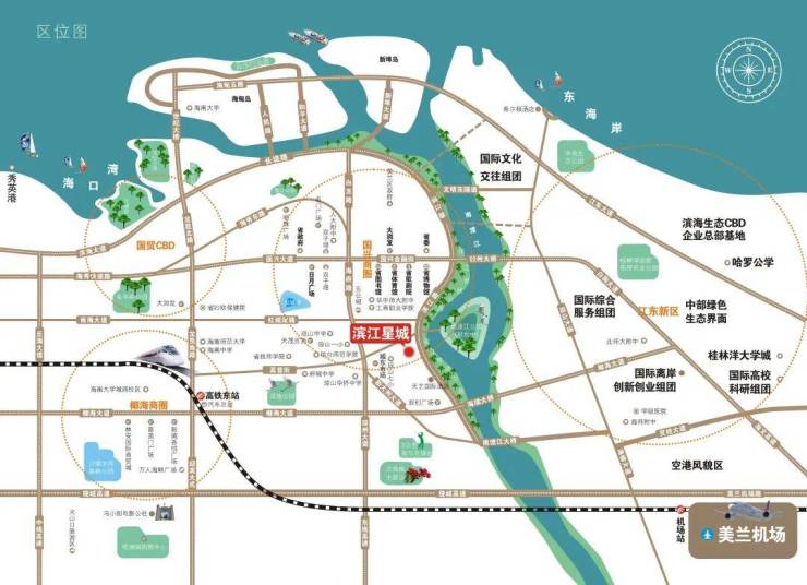 8分钟直达海口东高铁站20分钟直达海口美兰机场5分钟直达海口绕城高速,5分钟通达江东CBD、国兴CBD双CBD。