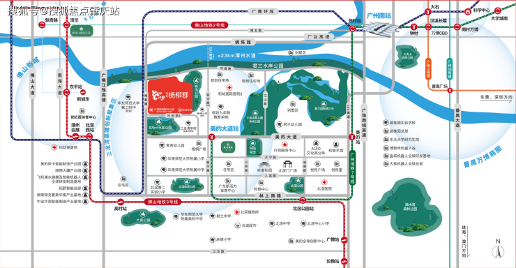 距广州地铁7号线美的大道站约900米(7号线已开通),驱车约3分钟即达