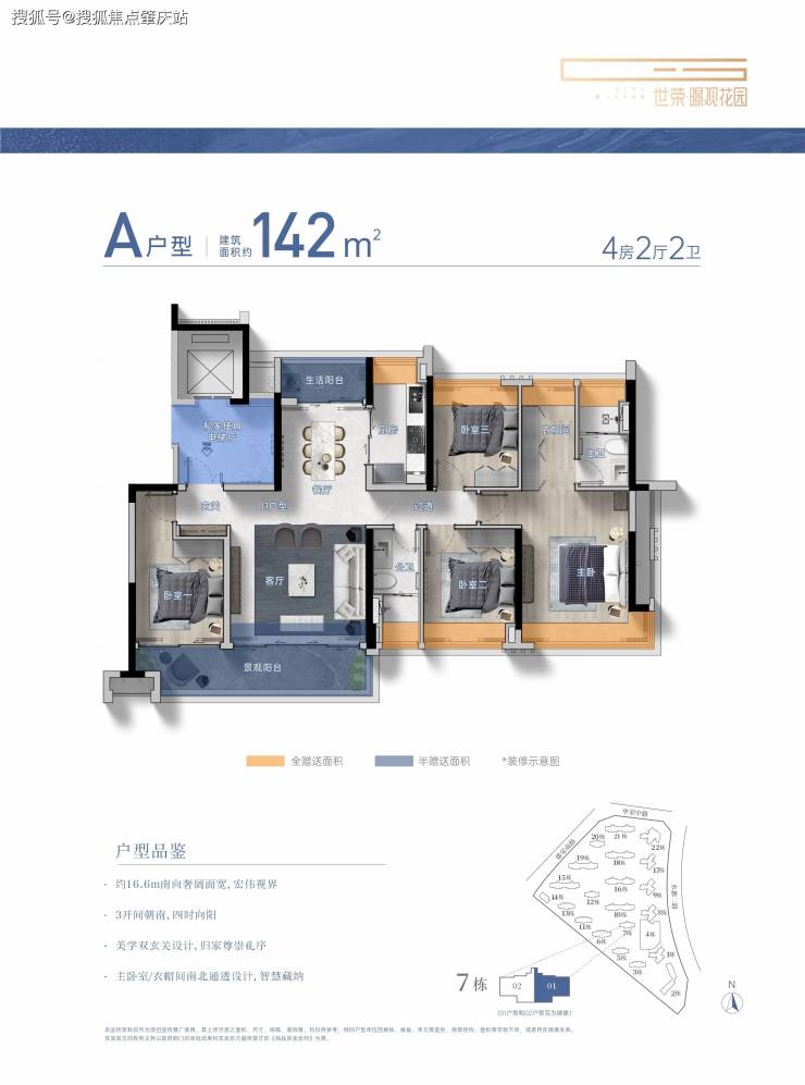 建筑面积约104-229㎡3-4房美学平层,着落其间