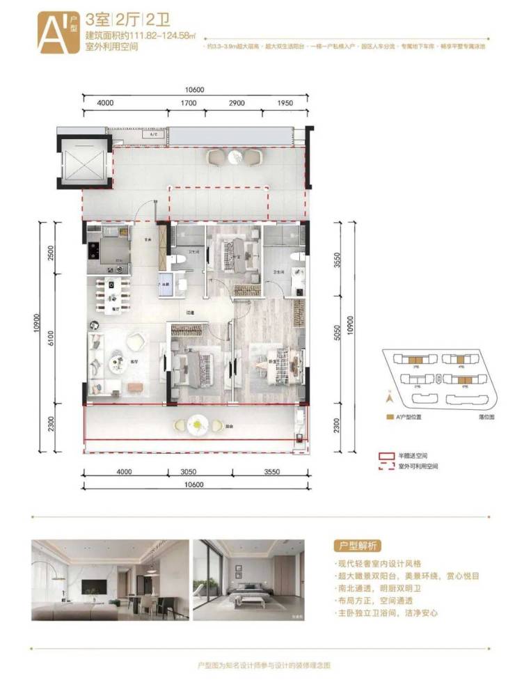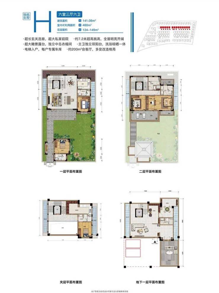 平墅:约109—169㎡ 一梯一户,康养平墅