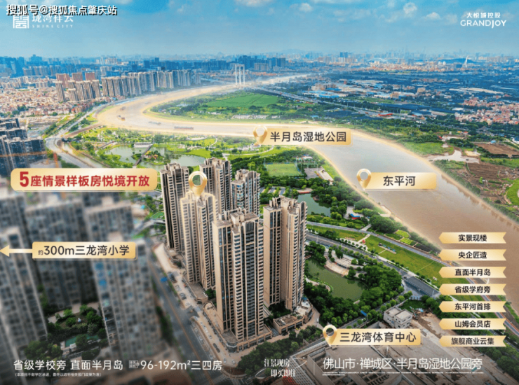 ●中粮·珑湾祥云,推窗即享东平河至美2公里景观资源。东平河首排无遮挡,沿岸形成26万㎡河滨公园,8.8万㎡半月岛湿地公园,全景式城市生态景观,江、湖、园、林全景收藏。数据来源:佛山市政府官网