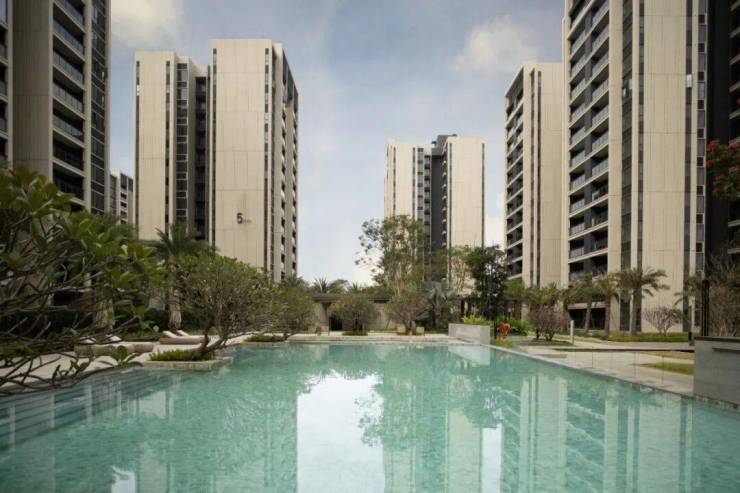 新加坡风格园林,以两轴一心多组团的规划布局,通过轴线设计营造出对称与秩序感。采用成品全冠移栽技术,力求“春有花、夏有荫、秋有果”,打造“城市花园”与“艺术空间”的双重居住体验。
