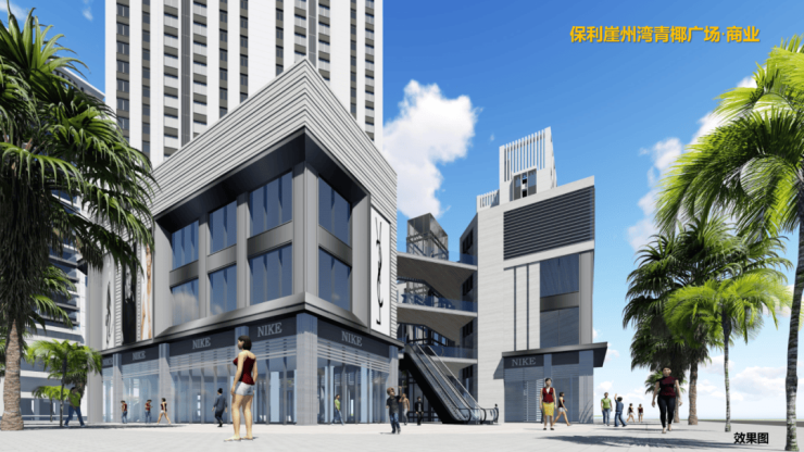 保利崖州湾·青椰广场为项目三期商业配套,集酒店、写字楼、商场等为一体,拥有约7000㎡的商业广场,目前已经招商入驻肯德基、香港喜喜餐厅、Costa咖啡、银行等商业,同时打造了“崖州湾科技城大社区综合服务中心”,作为党群共建、民生服务、休闲娱乐等功能为一体的综合场所。将打造成崖州商业新人气聚焦高地。