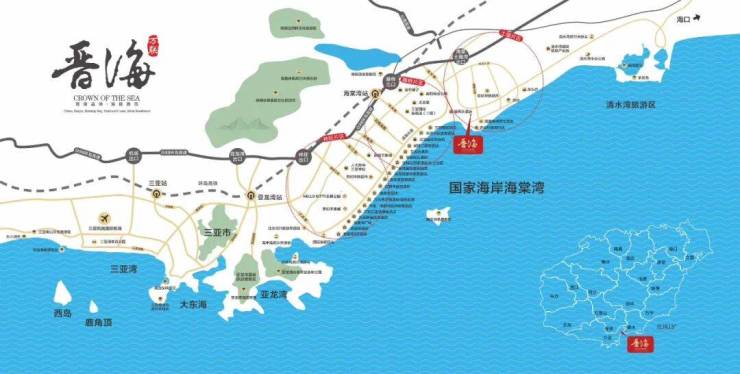 26公里长的海岸线,14公里长的原生态内河水系,拥有比肩世界著名滨海旅游度假区的优越资源国际顶级品牌滨海酒店:一线规划建设32家以上高端度假酒店,二三线建设约70家各类主题精品度假酒店,建成世界上最集中的高端度假酒店湾区,如亚特兰蒂斯、红树林、艾迪逊、天房洲际、万丽、嘉佩乐等世界级的旅游休闲胜地:国际免税城、海昌梦幻不夜城、亚特兰蒂斯水上乐园、超级万象城、太古里、宽窄巷子、Hello Kitty主题公园、蜈支洲岛海岛乐园等国家级医疗及健身疗养基地:解放军总医院海南分院(301医院)、国际养生社区、国际康体机构为载体,配合高尔夫、温泉疗养等养生配套设施,形成疗养、休闲、康体一体化的养生湾区