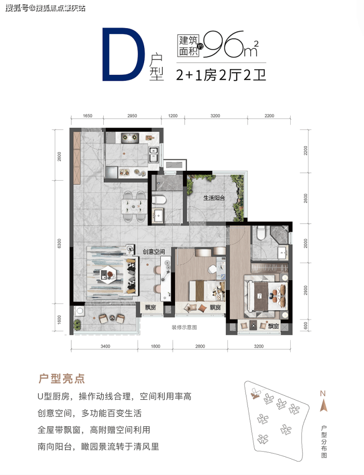 楼王1栋(毛坯):亲江96㎡3房2卫/江幕136㎡4房3卫