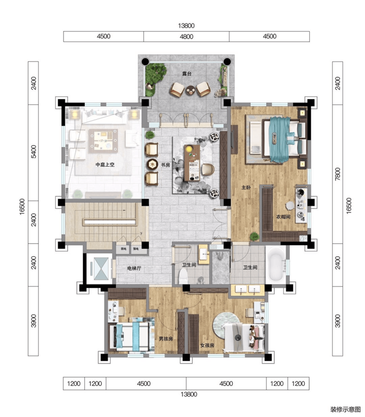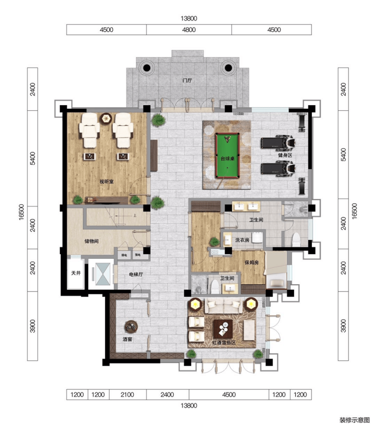 🏘️E户型 套内面积约:445.93㎡