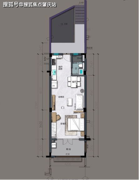 C1-C2 户型:三楼复式 6 米层高,建筑面积约 103㎡,复式两房 + 1 房两厅三卫,有现代轻奢、西班牙风格两种装修风格选择。