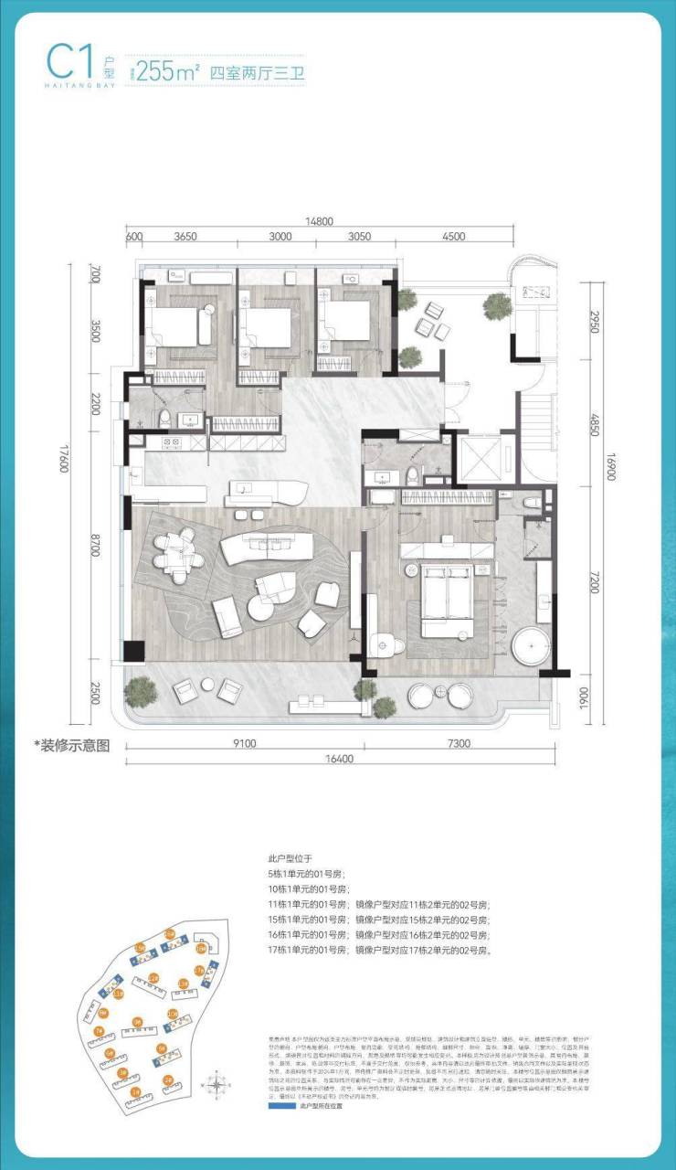 面积:建面约143-343㎡高端悦系奢邸3-4房