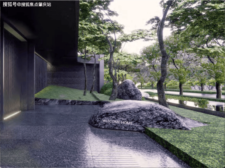 入口50米横向面宽,近6米的高跌水景墙与双层门楼让回家有了一份尊贵与隐奢;随着动线经过穿林,见山,伴水,来到模仿山石色调与铜色金属融合打造的酒店式大堂,一路草木清香、青石铺地、水系流动,自然的隐奢之美扑面而来。