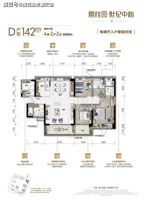 ※ 项目规划:总数6栋高层住宅、总数2栋超高层, 在售户型126-330m南向瞰景四至五房