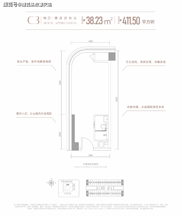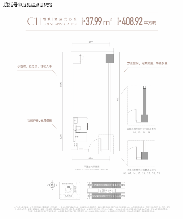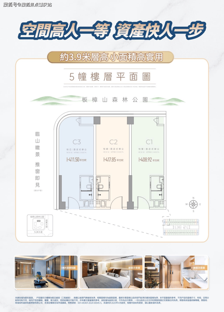 首推5幢建築面積約409-420平方呎高定資產,約3.9米層高小面積高實用,城芯優質資產。