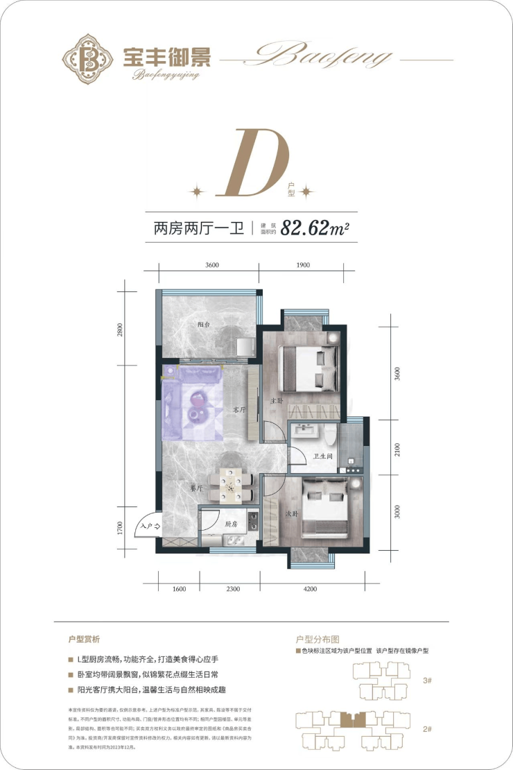 『D户型鉴赏 』 二房二厅一卫一阳台