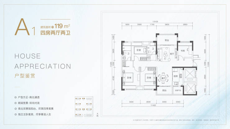 产品涵盖99-119㎡品质居所,两梯四户,99㎡三房配备2个卫生间,双阳台,超大赠送;119㎡四房轻松满足住房需求,刚需改善一步到位,且南北双阳台、全屋飘窗,得房率极高,是目前区域内性价比最高、户型最优异的安居产品。