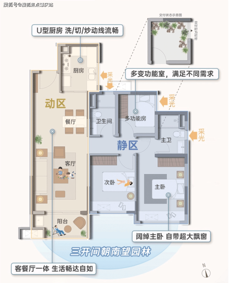 三开间朝南:三开间东南,超大采光面
