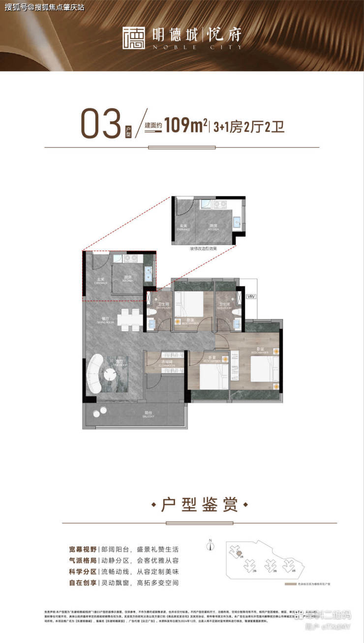 明德城总建面超100万㎡,由六个组团组成,集高端住宅、商务、商业、教育、休闲、生态等城市功能模块于一体的大型综合体项目。