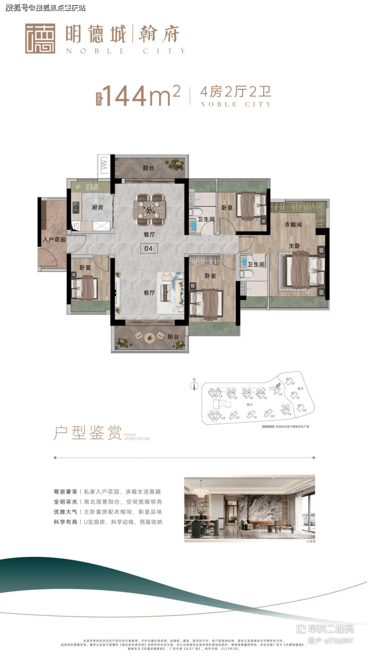 迭代人居封面:全生命周期高端改善型住宅,近乎全南向布局,纯点状设计,实现阳光清风亲密入户,打造最优日照采光,迭代府系高阶生活。