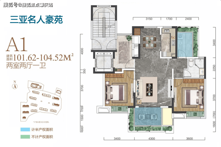 A1 户型:为二居室、南北设计,餐厨一体,有超 8㎡巧思空间,270° 观景阳台连接客厅,4.3 米面宽客厅,通风采光俱佳,空间宽阔大气。
