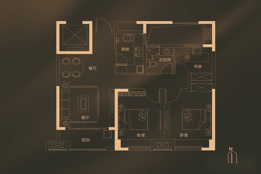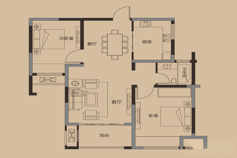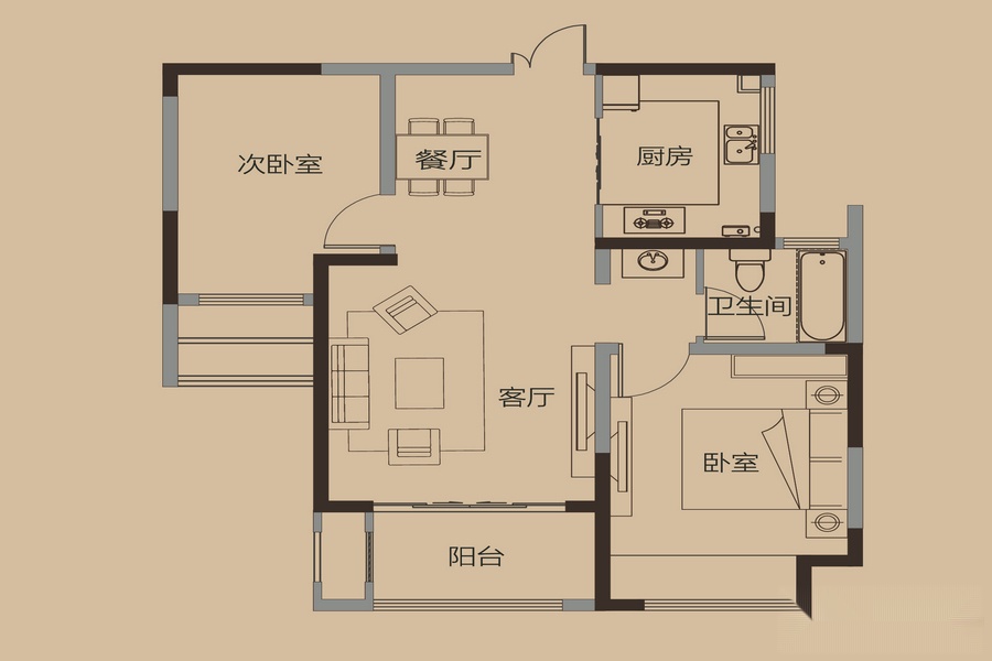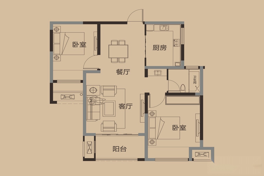 2室2厅1卫-四期2#3#K2户型