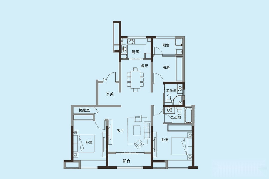 3室2厅2卫-三期3#4#X1户型