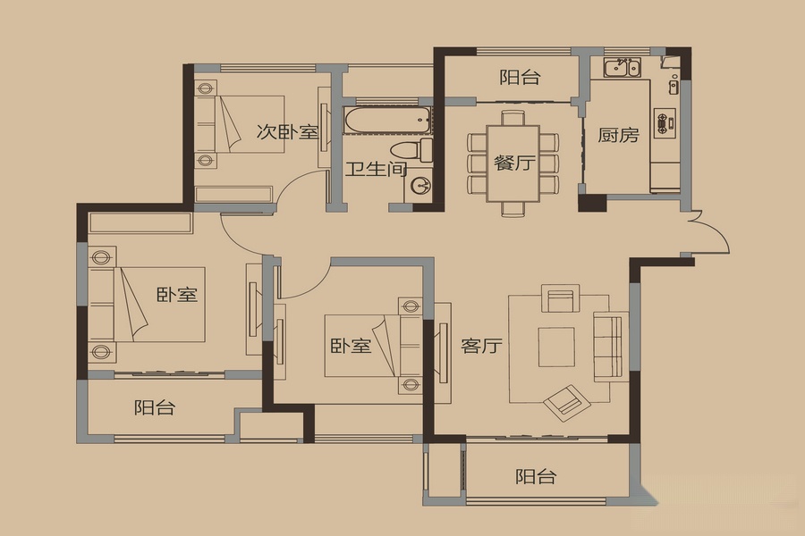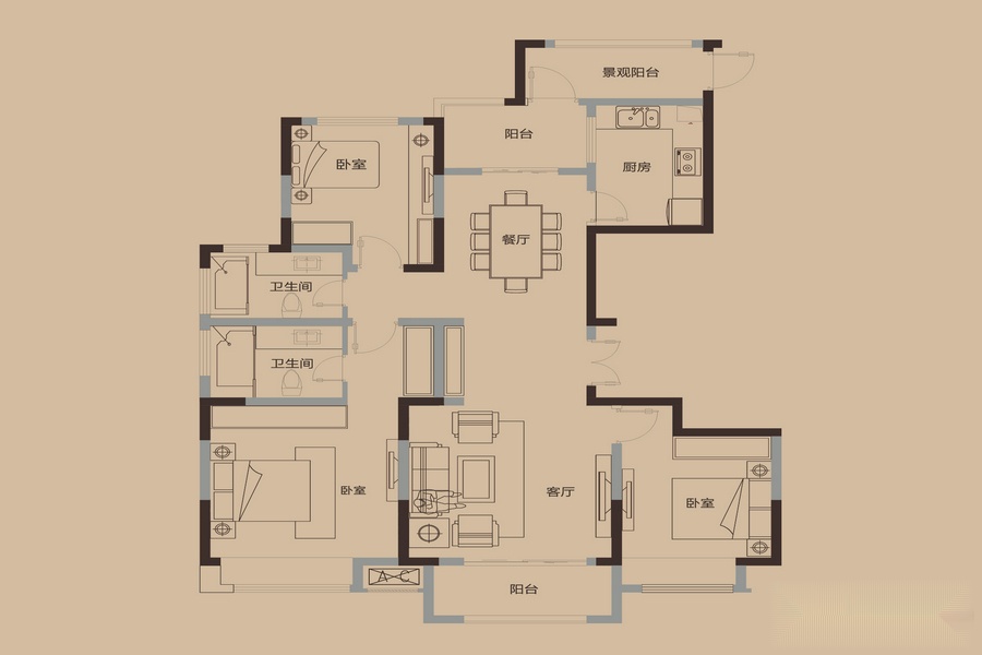 3室2厅2卫-四期2#3#J3户型