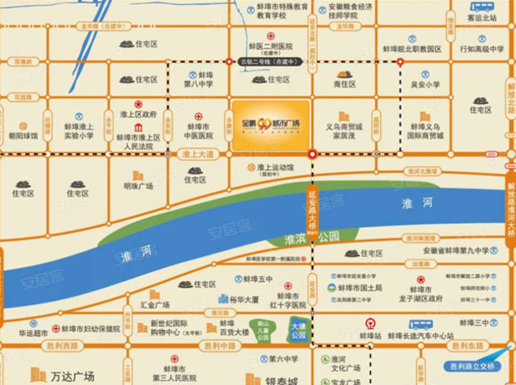 蚌埠金鹏99城市广场·中国印是金鹏地产进军蚌埠市区 力作。位于淮上大道与永康街交口,占地约10.5万方,总建筑面积约 26万方。其中包括近5万方 商业综合体,15栋河景高层,9栋电梯花园洋房。将打造成蚌埠市 云轨上盖的综合体科技豪装社区。金鹏99城市广场·中国印以新中式为建筑风格, 以中式人文园林社区的园林景观设计,我们的设计理念是以中式文化+主题公园为框架,通过城市文化的内涵植入,意境烘托,细节雕琢,打造融合全龄乐活社区、公园人居环境、人性化社区生活等现代多功能社区,35%的高绿地率,形成了居者 的私家园林,淋漓精致的呈现出新中式禅宗式的理性和宁静环境。 蚌埠金鹏99城市广场·中国印将于6月29日在淮河文化广场蚌埠会展 召开产品发布会暨招商盛典,“音乐诗人”游鸿明将空降蚌埠,于发布会现场倾情献唱,燃爆珠城!