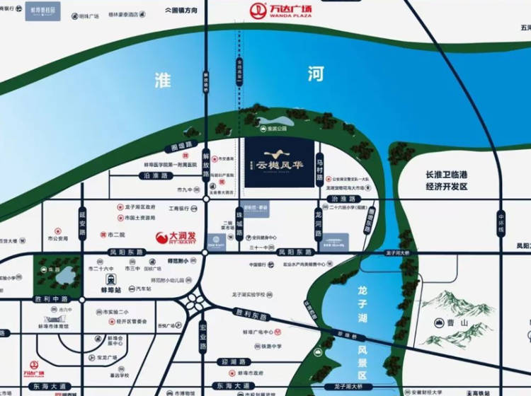 碧桂园云樾风华项目地块处于蚌埠东城老城核心,位于龙子湖区老城板块,区域内生活、教育、自然景观和商业等配套较好,规建临港产业园,大量老城改造计划,未来区位发展潜力巨大。本项目在区位上毗邻淮河、龙子湖湿地公园,临近曹山,城市文化也依托山河产生人文积淀。