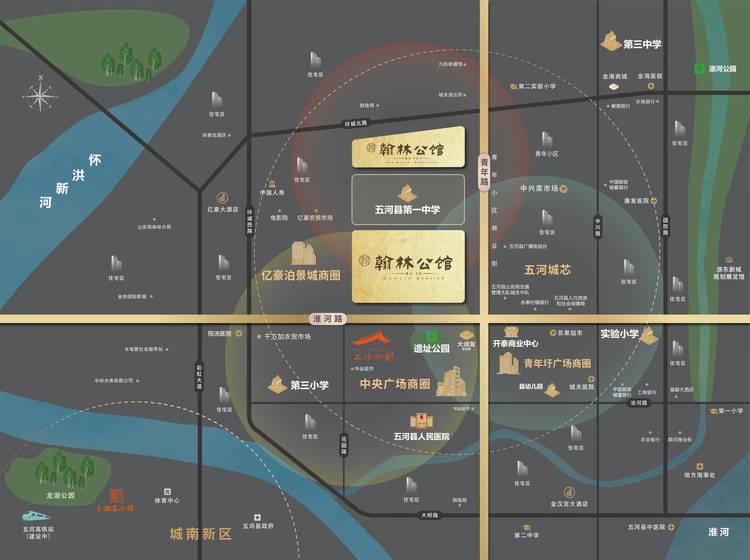 五河 淮河路与青年路交汇处(老县委/一中地块)