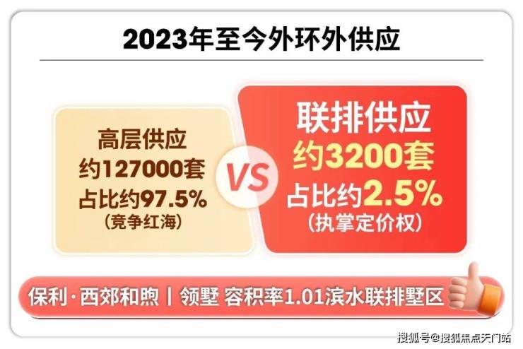 2023年以来,上海外环外高层供应占比约 97.5% ,联排别墅仅约 3200套、占比2.5% 。