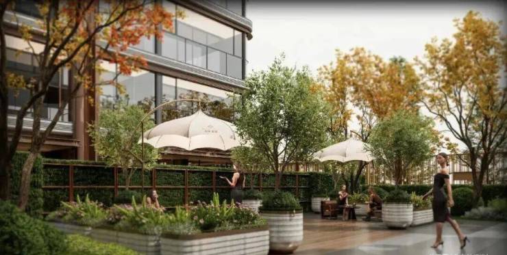 其次是外立面,项目溯源海派经典的ART DECO风骨,采用经典的三段式结构,整体布局讲究对称和秩序,横竖线条交织,体现出简约工整的现代美感。