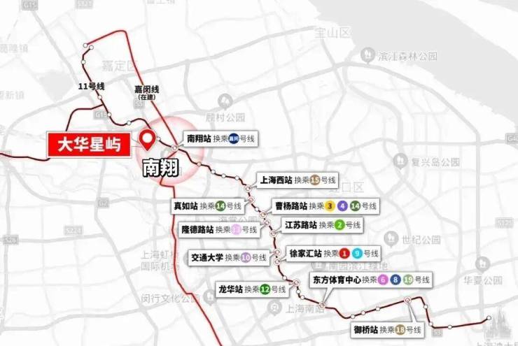 但南翔是11号线和嘉闵线的交汇点,本质是承担资源交汇的中心枢纽,在能级上就碾压其他外环附近板块。