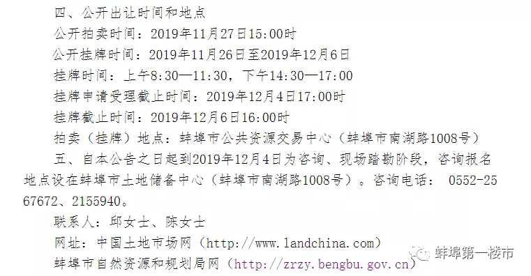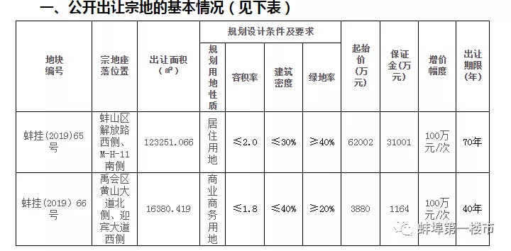 原定于11月22日下午公开拍卖的蚌挂(2019)65、66号2宗地因竞拍人数不足取消拍卖转为公开挂牌,挂牌截止日期为12月4日下午4点。
