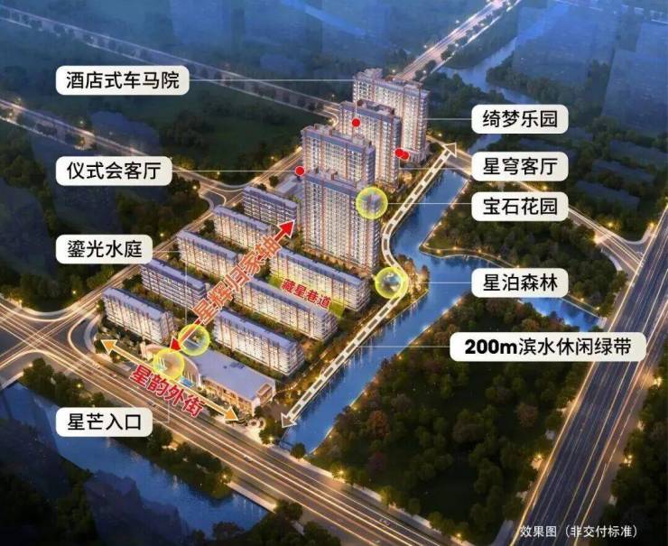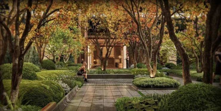 约150M主题归家轴 包括星韵外街、星芒入口、鎏光水庭、藏星巷道,让业主的每一次归家都宛如一场绿野仙踪