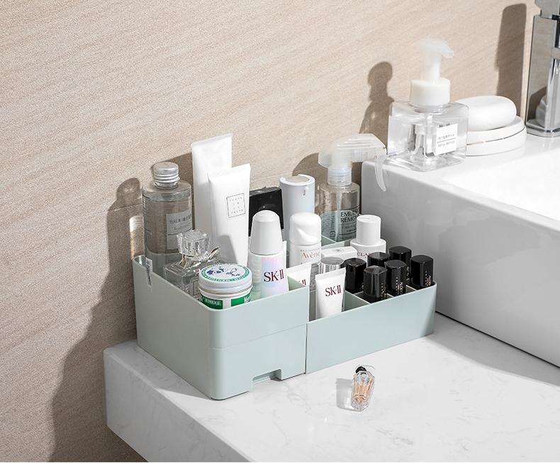 如果是女生的话,那化妆品一定是很多的,各种瓶瓶罐罐摆在桌子上既不美观又占地方,可以选一个化妆品呢收纳盒把它们放起来,整齐有序,还能很好地节省空间。