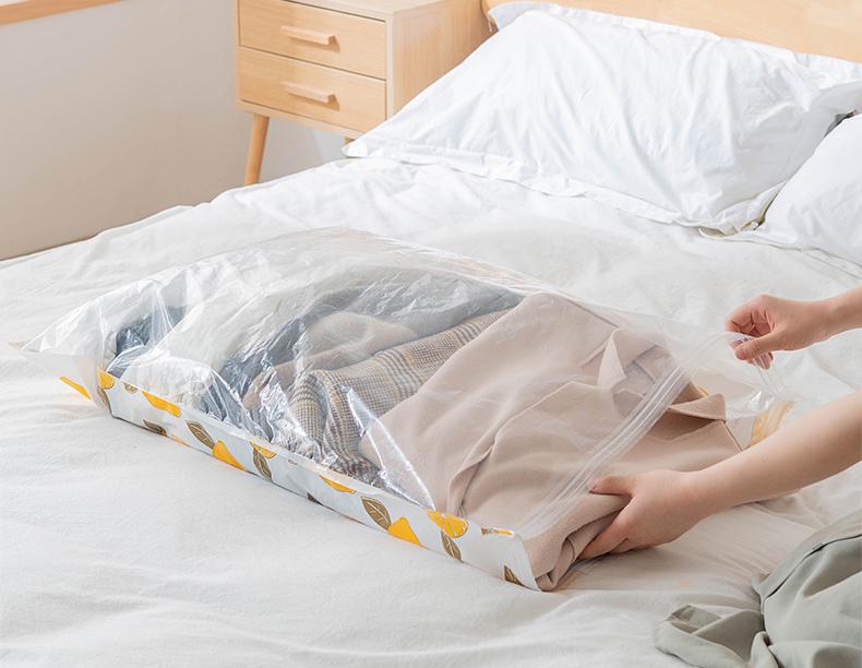 享受换季的衣服啊、被子啊,一般我们都会得起来放在柜子里,这样是非常占用空间的,我们可以购买一些非常实用的真空储物袋,把这些过季的衣服收纳起来,不仅能大大的减小空间的占用,还能避免这些衣服物品发潮发霉,起到很好的保护作用,可以说是一举两得。