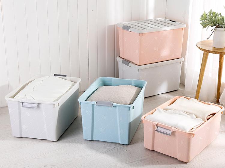 一般的时候,我们为了经济实惠,会在买毛巾等洗护用品的时候,一下囤很多,用不掉的情况很多,这时候,我们可以把这些东西放在收纳箱里,盖上盖子,放在家里既不占地方,又显得非常美观,关键是对于防潮是很有效的。