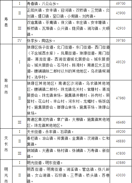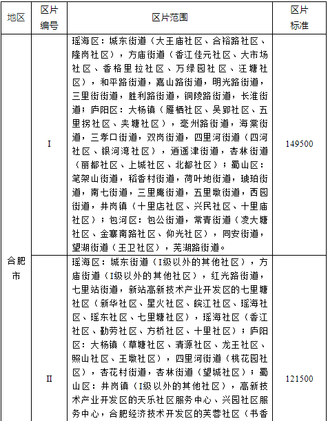 安徽省征地区片综合地价标准