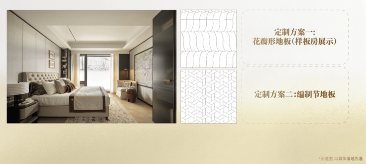 地面材质、地板拼花、内门把手款式可按需搭配;