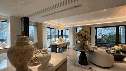 搭配入户景观与落地窗自然渗透设计,翡雲悦府·悦墅II期打造了一个以LDKB无界宽厅为核心的流动五联厅,彻底打破 “客厅-餐厅-厨房-庭院-卧室” 的传统割裂。