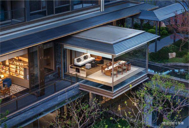 整个会所环抱山水庭院,无边界设计让自然与空间无缝交融。