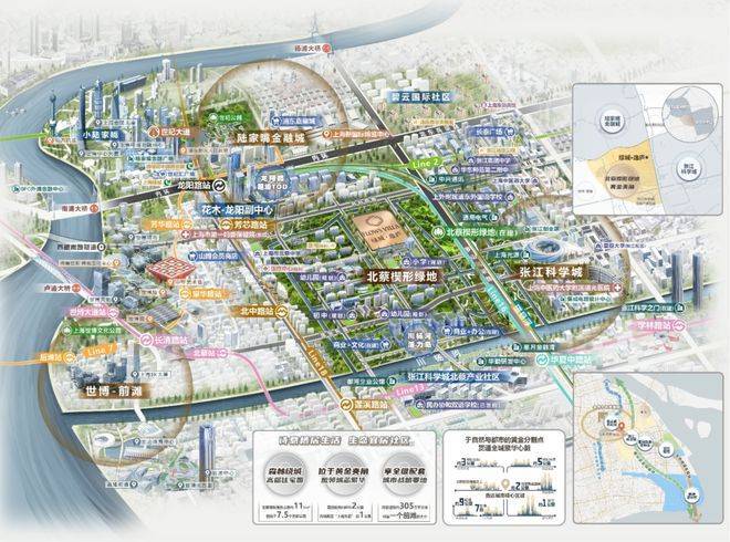 商业方面:项目本身享有规划中的滨水商业街区(南侧川杨河沿岸)。半径5km范围内,覆盖浦东山姆会员店、宜家、长泰广场、科学之门、复地活力城、巴黎春天等成熟商圈,10km半径更可无缝衔接国金、世纪汇、世博源、前滩太古里等顶级商业地标。